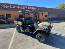 The RTVX4-PDLHS-1 is a 24.8 HP diesel UTV with a crew cab, 4WD, and a hydraulic lift cargo bed. Key specs include a 1,300 lb towing capacity, 1,631 lb payload capacity, and a 25 mph travel speed. It features power steering, an HST transmission, and premium options like alloy wheels and LED headlights.
